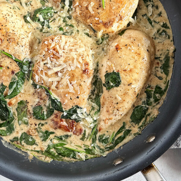 Whenever I am looking for an easy dinner that also feels special, this chicken Florentine always delivers. It’s a classic combination of flavours, universally loved and a bit indulgent for when that’s needed. Serve with mashed potatoes or rice for a fabulous chicken dinner.