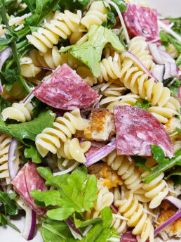 Red Onion – it’s hard to beat red onion in a fresh salad, so that would be the best option. Yellow onion will work here, in a pinch.